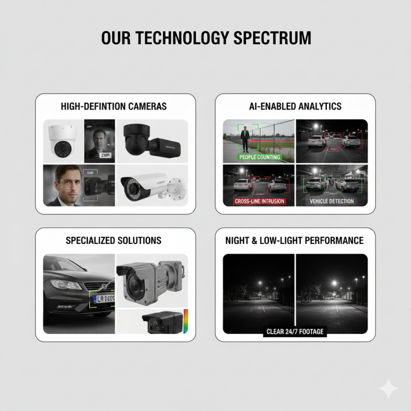 • Specialized Solutions: License Plate Recognition (LPR) for parking/gates, thermal cameras for perimeter security, and vandal-proof housing.